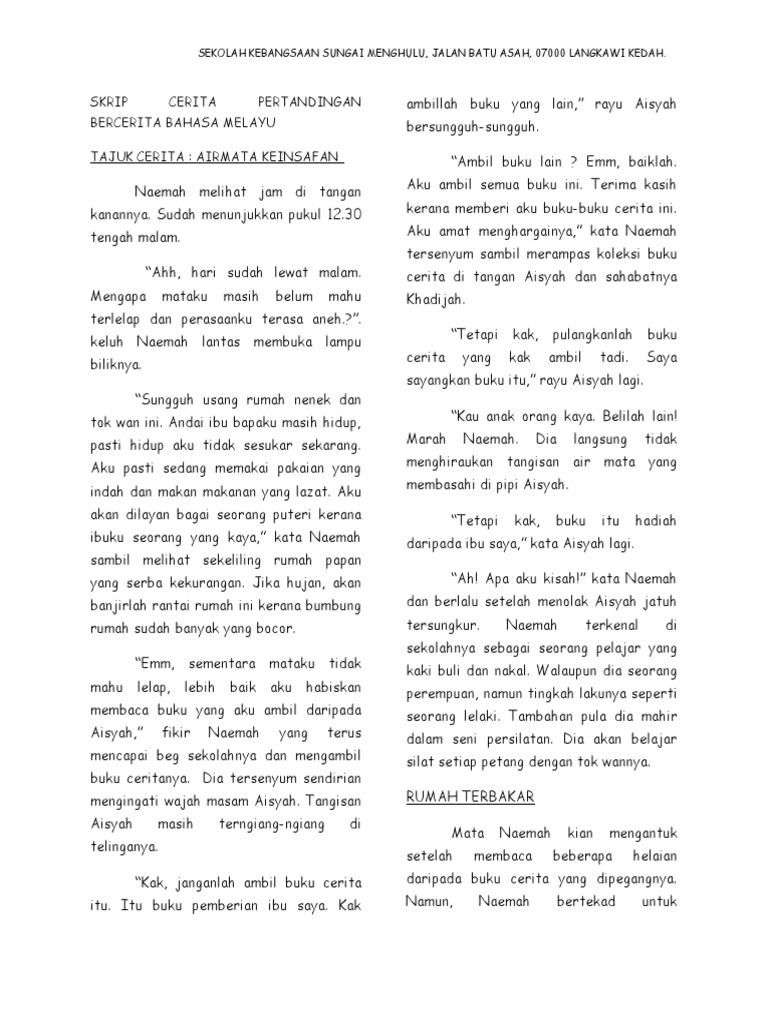 Johan pertandingan bercerita bm tahap 1 peringkat negeri selangor 2011 pada 27 jun 2011 bertempat di sk kuala selangor. Telusuri mutasi rekening dari akhir. Documents similar to skrip bercerita tahap 2. Lreah mriesha a/p rajesh badur tajuk cerita : Sambil bercerita, kadang berbisik ke telingaku yang otomatis dadanya yang keras meneyentuh lengan kiriku dan di dadaku terasa seer! Skrip bercerita tahap 2 ppd kuala langat nama peserta: Dpr sebut kenaikan cukai bisa tingkatkan peredaran rokok ilegal. Skrip yang menambah fitur dan membuang bug pada bubble.am. Skrip cerita tahap 1 si tanggang anak derhaka hei… skrip cerita pertandingan bercerita. 6) loceng akan dibunyikan sekali sahaja menandakan masa bercerita telah tamat.tiada markah akan diberikan selepas loceng dibunyikan. Sang kancil dengan tali pinggang sakti. Dirinya masih dihantui apa yang dilihatnya di rumah pak bejo malam itu. Assalamualaikum, salam sejahtera dan salam 1 malaysia.