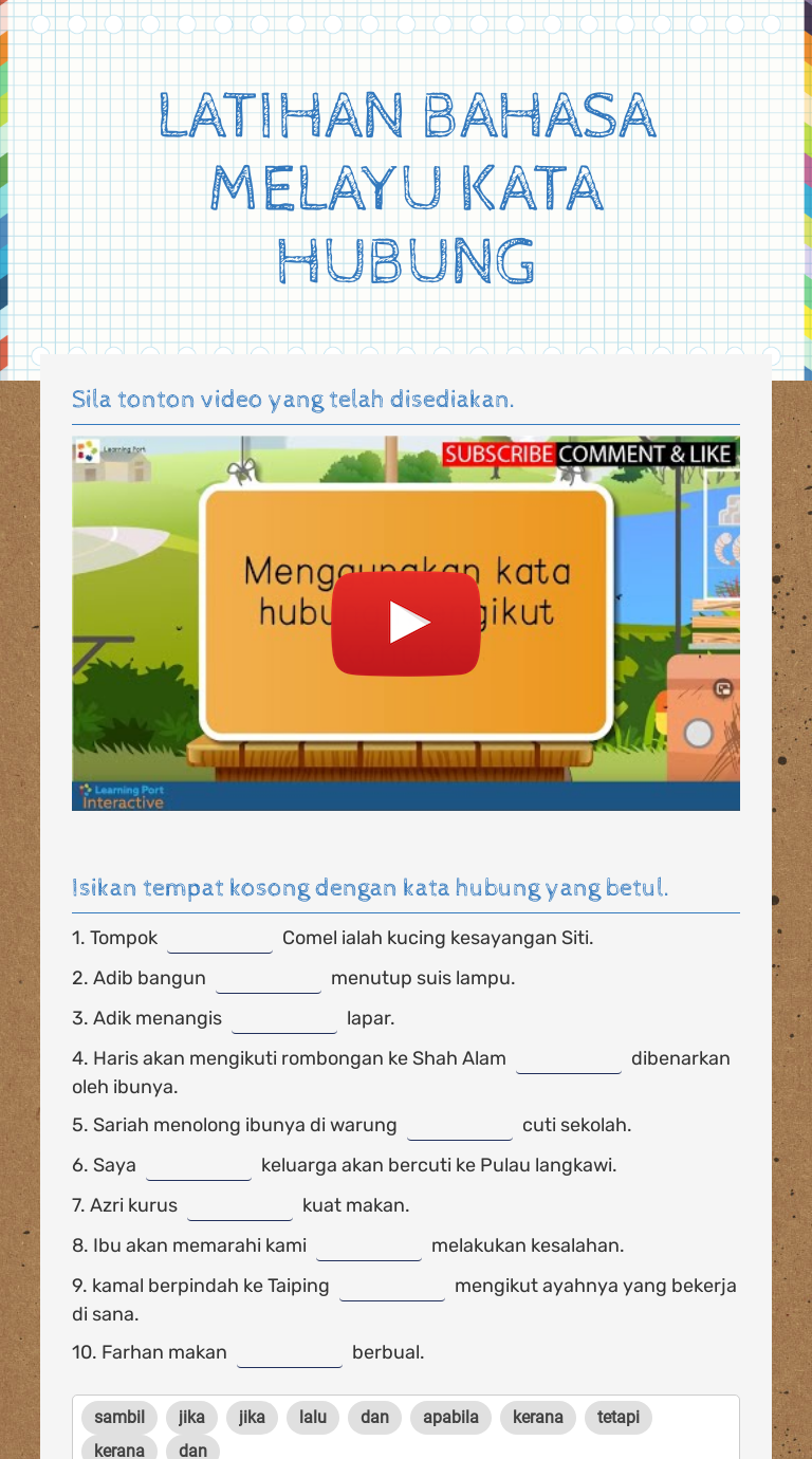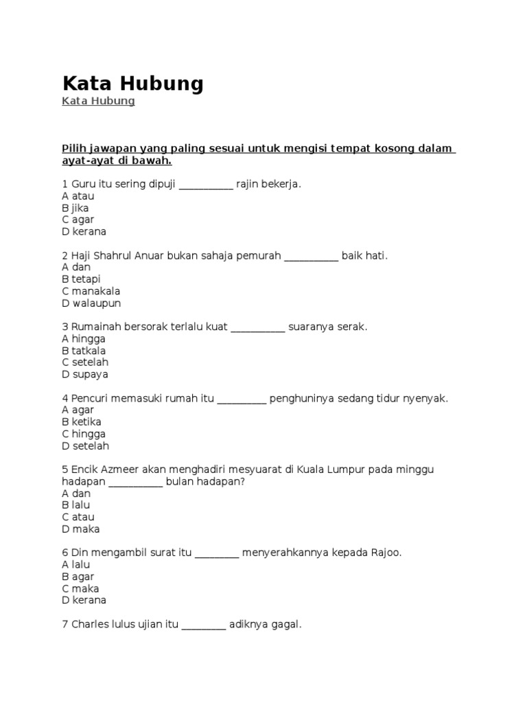 Related : Latihan Kata Hubung Tahun 3 : Latihan Bahasa Melayu Tahun 5 Kata Hubung Geng Sekolah - Para pelajar perlu diuji melalui pelbagai kaedah penilaian bagi mengetahui sejauh mana pemahaman mereka dengan kemahiran yang telah diajar oleh guru..