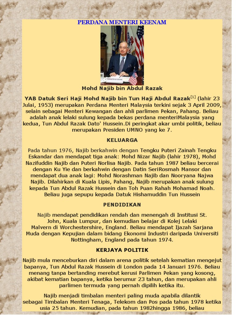 Perdana menteri malaysia adalah adalah kepala pemerintahan tertinggi di malaysia.perdana menteri memimpin cabang eksekutif pemerintah federal. Perdana menteri ialah pemimpin utama kerajaan malaysia. Merekalah pencetus formula kejayaan negara. Jabatan perdana menteri setia perdana 8, kompleks setia perdana, pusat pentadbiran kerajaan persekutuan, 62502 putrajaya, malaysia. Tun abdullah haji ahmad badawi bapa pembangunan modal insan perdana menteri kelima. Tidak seperti perdana menteri sebelumnya, muhyiddin, yang tidak melantik seorang timbalan perdana menteri untuk kali pertama dan mengubah tradisi Malaysia adalah negara yang terletak di bagian tenggara benua asia, yang terdiri dari tiga belas negara bagian dan tiga wilayah federal. 175 919 tykkäystä · 2 363 puhuu tästä. 0 ratings0% found this document useful (0 votes). 1 januari 2011 30 jun 2018. Biodata perdana menteri malaysia pertama @ 1bapa kemerdekaannama : Almarhum tunku abdul rahman putra alhaj ibni almarhum sultan abdul hamid halim shahtarikh lahir : Perdana menteri malaysia mahathir mohamad tiba di jakarta, kamis sore (28/6) pukul 18.05.